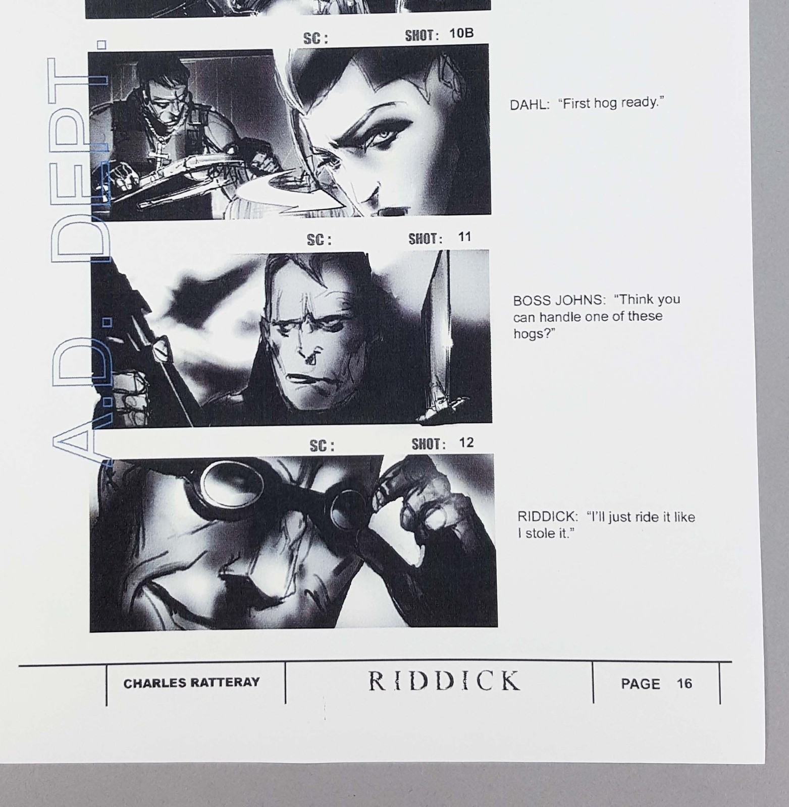 Offered here is a production used storyboard from the 2013 film Riddick, starring Riddick as Vin Diesel.