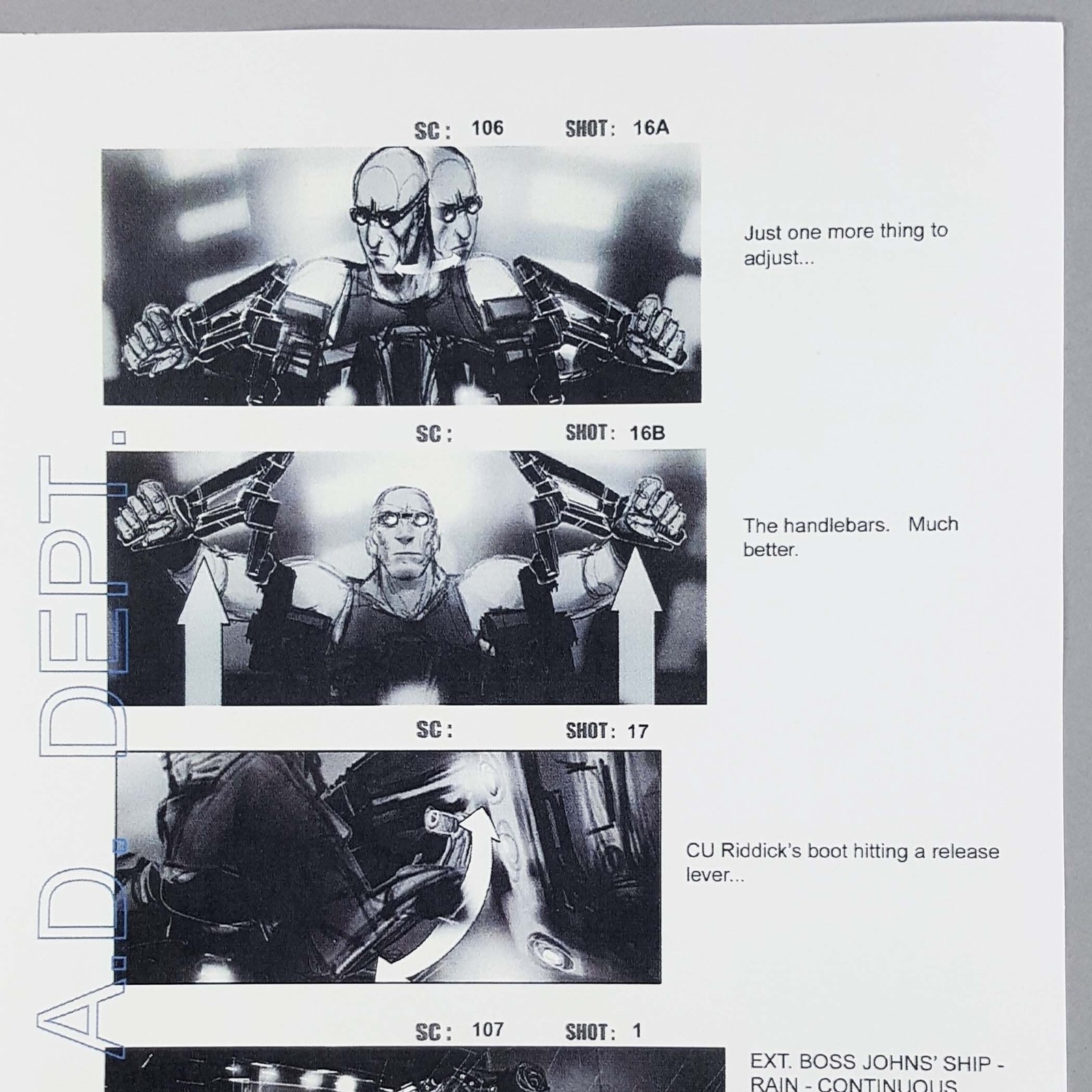Riddick Sci-Fi Action Film Storyboard Page 18 Production Used Prop